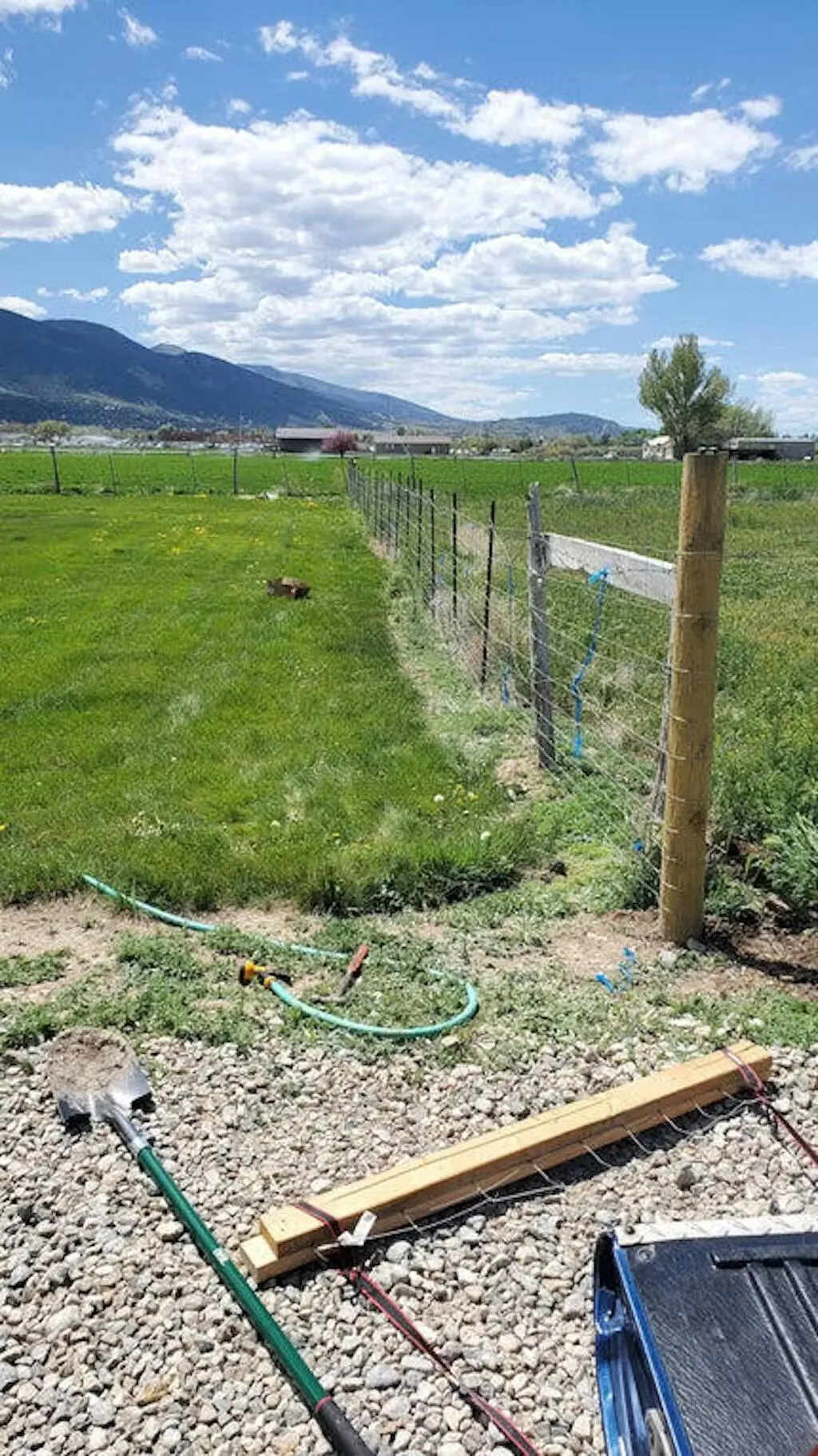 This roll goes a long way. Wire is stiff, so wear gloves, but it stretches straight and stays put once stapled to posts.