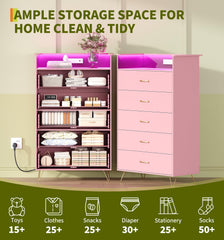 Garvee 5-Drawer Tall Dresser Modern Wood Chest With Silent Closing Slides Water-Resistant White Storage Organizer For Bedroom Hallway Closet Pink