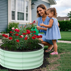 - Superior Stability: Made with 0.5mm thick galvanized sheets, overlapping up to 1.8mm at seams for enhanced strength. Screw-fixed edges and an oval shape provide extra sturdiness, maintaining solid structure even when filled with soil.