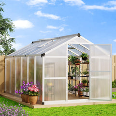 Garvee 8x12 FT Aluminum Greenhouse with Polycarbonate Panels, Roof Vent, Walk-in Design, Heavy Duty Frame, UV Protection, Backyard & Patio Use