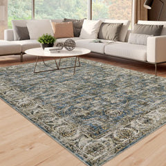 Garvee 5x7 Area Rugs Washable Non Skid Vintage Rug for Living Room Bedroom Dining Room Blue