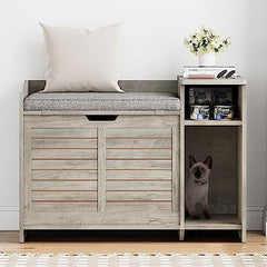 Garvee Cat Litter Box Enclosure with Cushion, Hidden Cat Litter Box Furniture, Cat Litter Box Furniture with Top Opening, Flip Top Litter Box Enclosure Cat House, Grey