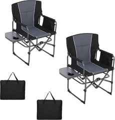 Garvee 2 Pack Oversized Camping Directors Chairs With Side Table Storage Pouch Cup Holder For Beach Fishing Picnic 31.89x19.69x36.22 Inches Black