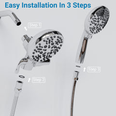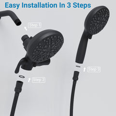 - 【EASY INSTALLATION】No extra tools need, install in a minute. After installation, place the hand held shower head along the inside of the fixed shower head from top to bottom.