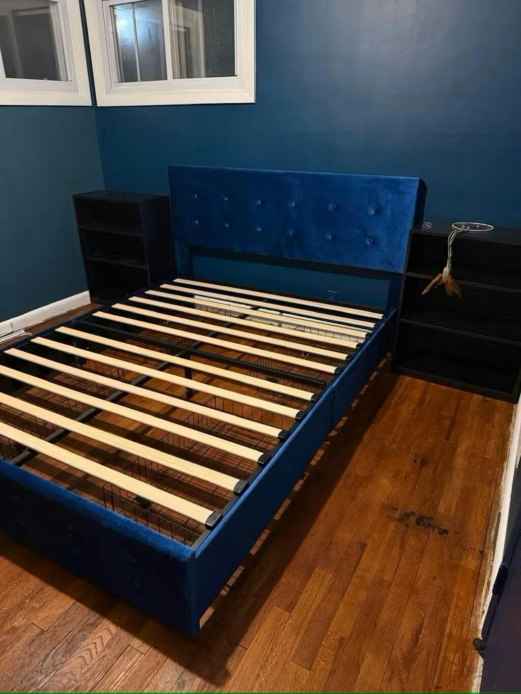- 【Sturdy and Quiet】The full size bed frame with drawers features 12 durable wooden slats for added stability and a weight capacity of up to 1000 pounds, making it safe for kids to play on. We've also included EVA sponge strips to reduce noise and ensure a peaceful sleeping experience.