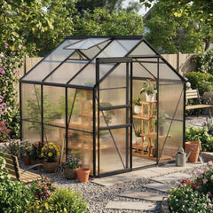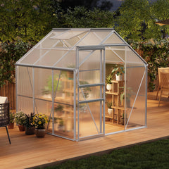 - 【Sturdy and Durable】Designed to endure challenging weather, our greenhouse features 720 g/m² polycarbonate panels and a solid aluminum steel frame. This design ensures stability and protection during heavy rain and gales. Keep your plants safe and thriving in a reliable greenhouse built to last