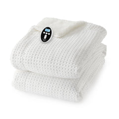Garvee Waffle Heated Throw Blanket, Machine-Washable Electric Throw with LCD Controller, 6 Heat Levels & Timer, Fast Heating for Couch or Bed, Waffle Sherpa, 60x50 inches, Gray