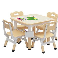 Garvee Kids Table and 4 Chairs Set with Graffiti Desktop, Height Adjustable Toddler Table and Chairs Set, 4 in 1 Activity Table Play Table for Reading, Drawing, Playing, Eating,Beige