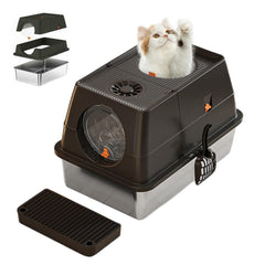 - Double-entry Litter Box: The front door entry and upper exit design conforms to the cat's jumping nature. The filter pedal not only collects cat litter on the cat's claws, keeps the floor clean and saves cat litter usage, but also makes it easier for older cats or cats with short legs to enter the metal litter box.