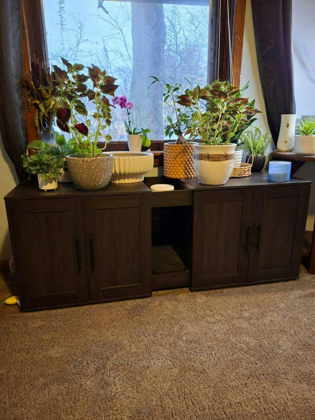 Doubles as a cat house, private toilet, and stylish furniture piece for your home.