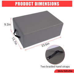 - VARIOUS OPTIONS:Our Pilates Sitting Box have two options:① Non-foldable pilates reformer box size:23.6 x 15.7 x 9.2 inches, color:black or grey ②Collapsible Pilates box size:24.4"x16.9"x9",foldable size:24.4"x16.9"x4.7",which crafted to be fully compatible with all Pilates reformer equipment on the market.