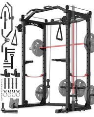 - 【Comprehensive Training】 This multi-functional workout machine allows you to engage in various exercises, targeting different muscle groups. Examples include cable fly, lat pulldown, landmine movements, row, squat, bench press, deadlifts, bicep curls, tricep extensions, pull-ups, dip, and more.