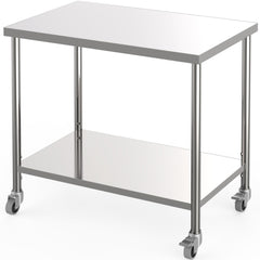 Garvee Commercial Stainless Steel Prep Table 36"x24" with Adjustable Undershelf, Locking Casters for Kitchen, Restaurant, Garage, Outdoor Use, Silver