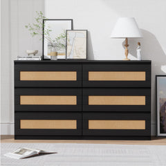 Garvee Rattan Dresser for Bedroom - 6 Drawer, Anti-Tip Kit, Smooth Slide Rail, MDF Wood, White - Bedroom, Hallway, Living Room