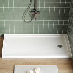 Garvee 60" x 32" Shower Base Left Drain Acrylic Fiberglass Slip Resistant Textured Surface Center Drain Removable Stainless Cover