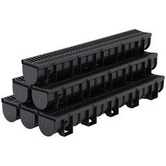 Garvee Trench Drain System with Plastic Grate, HDPE Channel Drain for Outdoor Garden Driveway Pool Sidewalk Patio, 39.4Lx5.9Wx5.1H in, Black, 6 Pack