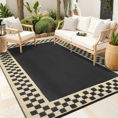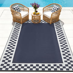 - for Outdoor Living: Elevate any outdoor space with a contemporary geometric bordered design that adds elegance. Ideal for balconies, backyards, and beach outings, this waterproof plastic rug complements furniture and creates a welcoming atmosphere