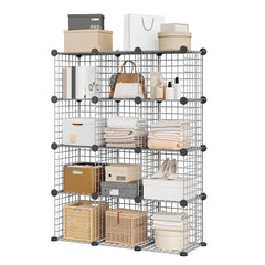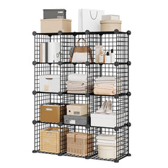 Garvee 12-Cube Modular Wire Organizer Durable Metal Black for Bedroom & Office Storage